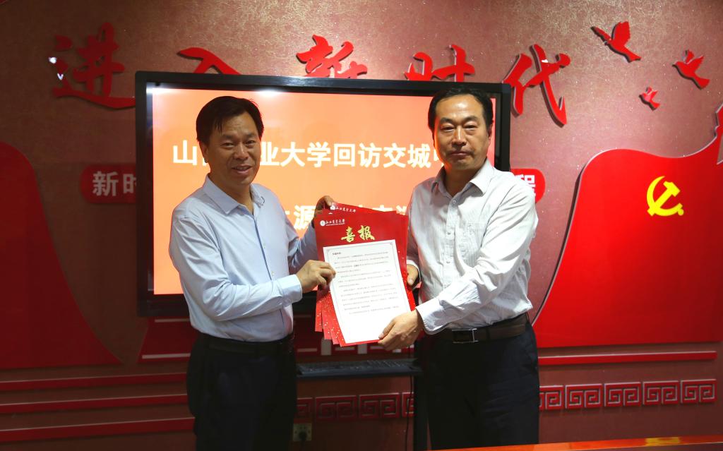 5月27日,学生工作部部长原广华一行到我校优质生源基地——交城中学回访,并举办考研学生喜报送接仪式。交城县副县长薛慧、教育科技局局长闫建明、副局长杨国宝及交城中学领导班子成员和十二名班主任参加了会议,会议由交城副县长薛慧主持。